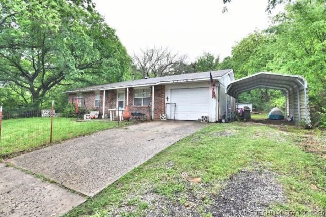 Charming 2-bedroom, 1-bath brick home located in the desirable Hominy, offering a functional floor plan and thoughtful updates throughout. This clean, move-in-ready home features updated closets and a newer stove. Enjoy outdoor living with a covered front porch, fenced front yard, and 4 lots that are shaded, perfect for relaxing or entertaining. The property also includes a one-car attached garage and a two-car driveway for ample parking. Ideal for first-time buyers, downsizers, or investors, this home offers comfort, updates, and value in a great location. Selling as is.